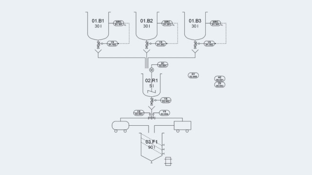 完整批次跟踪、文件编制和质量评估,从原材料到向反应步骤,一直到最终产品的灌装和包装 - 对间歇式反应器的要求类似于连续生产过程。相比之下,批量生产取决于市场状况。这需要可扩展的解决方案,以确保极大的灵活性和模块化的自动化系统。反应器是生产装置的核心组件。液体物质在搅拌釜式反应器中合成。因此,搅拌釜式反应器配备有一个进料口和排料口,以及用于插入测量仪器的喷嘴。反应的逐批性能需要连续的过程监控。